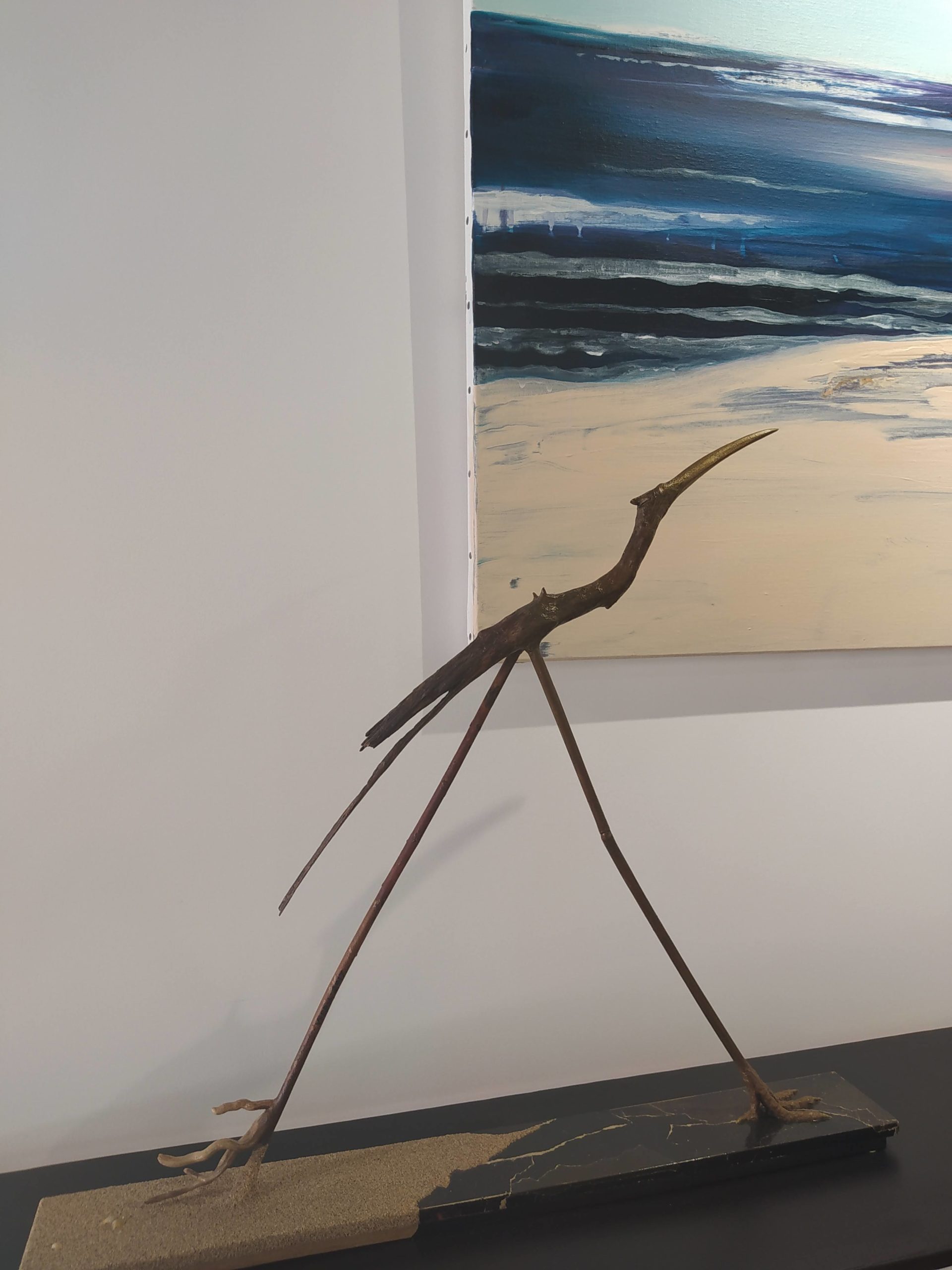 Les œuvres de l’une s’accordent naturellement aux œuvres de l’autre. En effet, les sculptures oiseaux de Véro Lombard prennent forme dans la matière bois provenant essentiellement de l’eau et les pastels de Sylvie Poirson proposent des figurations ou abstractions de l’eau tout en transparence.